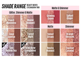 KAJA's Beauty Bento Bouncy Shimmer Eyeshadow Trio is a stacked, creamy, powder eyeshadow in curated trios of shimmers or combinations of matte and shimmer shades.