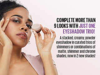 AVAILABLE COLORS: Available in 13 trio stacks. These bouncy eyeshadows come packaged in bite-sized shimmer stacks or trios of matte and shimmer pigments that apply effortlessly with your fingertips.