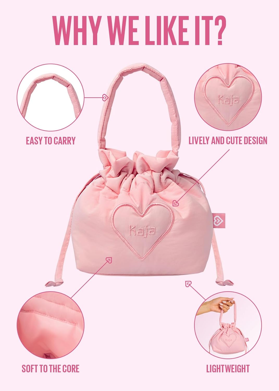 KUTEST BAG EVER: Lucky bag pouch is a cozy and cute bucket bag pouch with two drawstrings for easy opening and closing. Comes in a sweet rose pink color, 1ea per box.