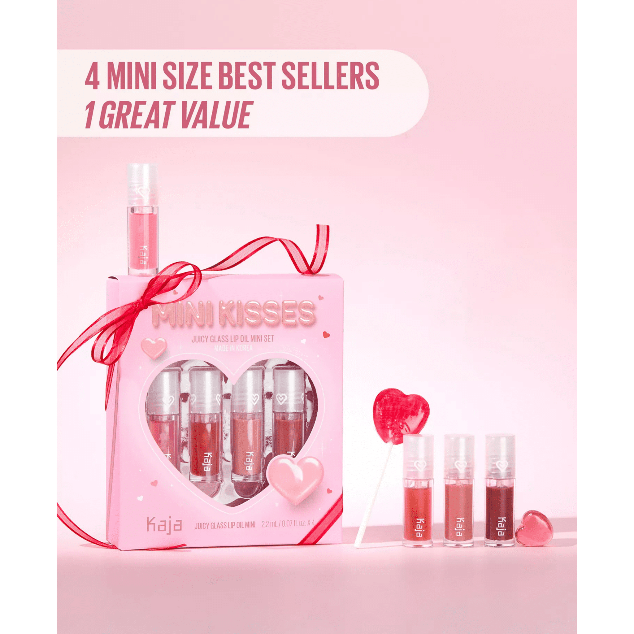Hydrate, plump, and shine with this Mini Kisses Lip Oil Set from Kaja, featuring four sheer, milky shades. A large, comfortable applicator ensures smooth, even application for juicy, glass-like lips. The non-sticky formulas soften and nourish for a kissable finish.